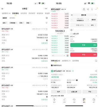 The remaining 15% was left to observe. I typically reduce large positions when unsure about future trends and maintain a smaller position for monitoring. That evening, prices began dropping, and my 0.5 $BTC long position at $103,555 was liquidated.