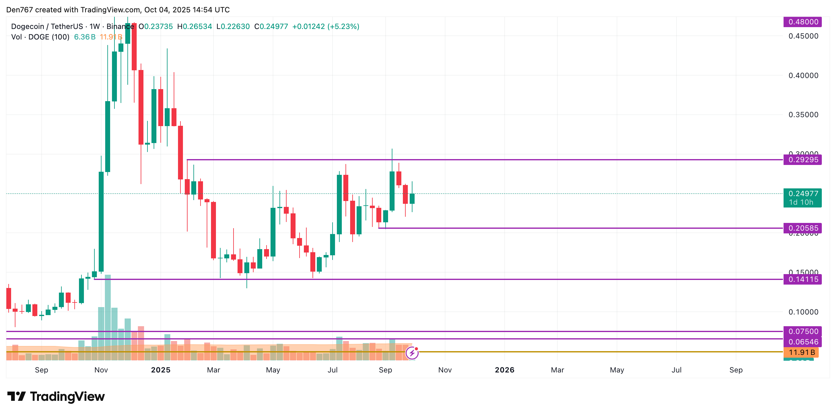 From the midterm point of view, the picture is neutral as the rate of DOGE is in the middle of the channel between the support of $0.2058 and the resistance of $0.2929. As neither side is dominating, consolidation in the zone of $0.24-$0.27 is the more likely scenario.