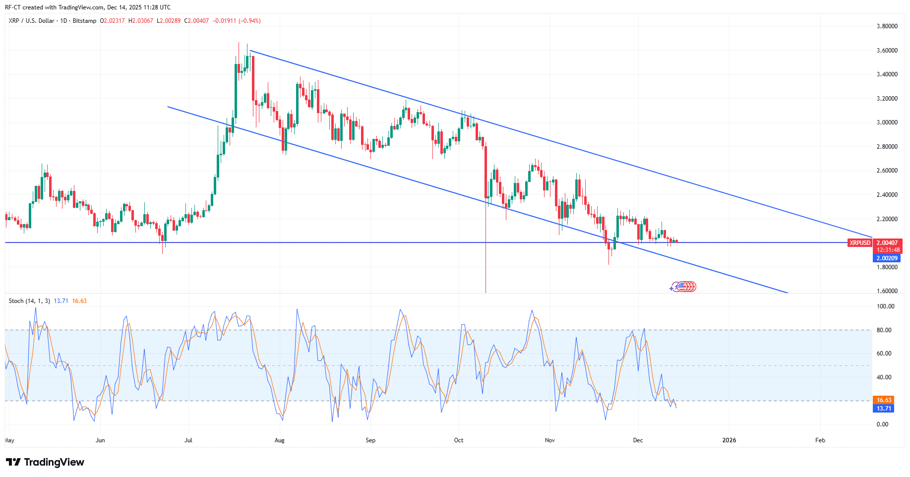 $XRP is currently trading around the $2.00 zone, a level that has repeatedly acted as both support and resistance over the past few months. While some analysts are aggressively calling for $3 XRP by the end of December, the technical picture on the daily chart suggests caution rather than excitement.