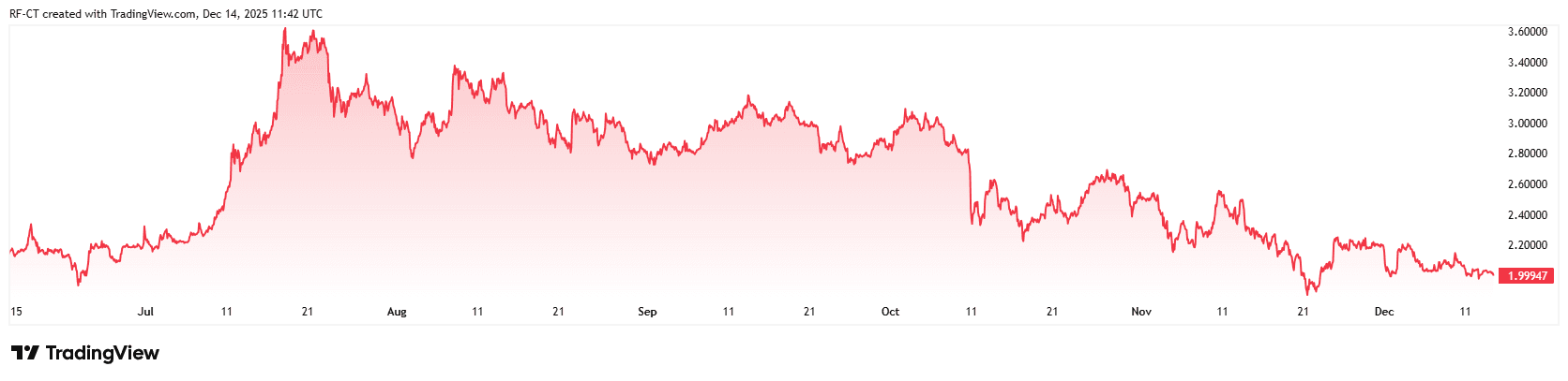 - The recent breakdown back toward $2.00 shows weak follow-through from buyers.