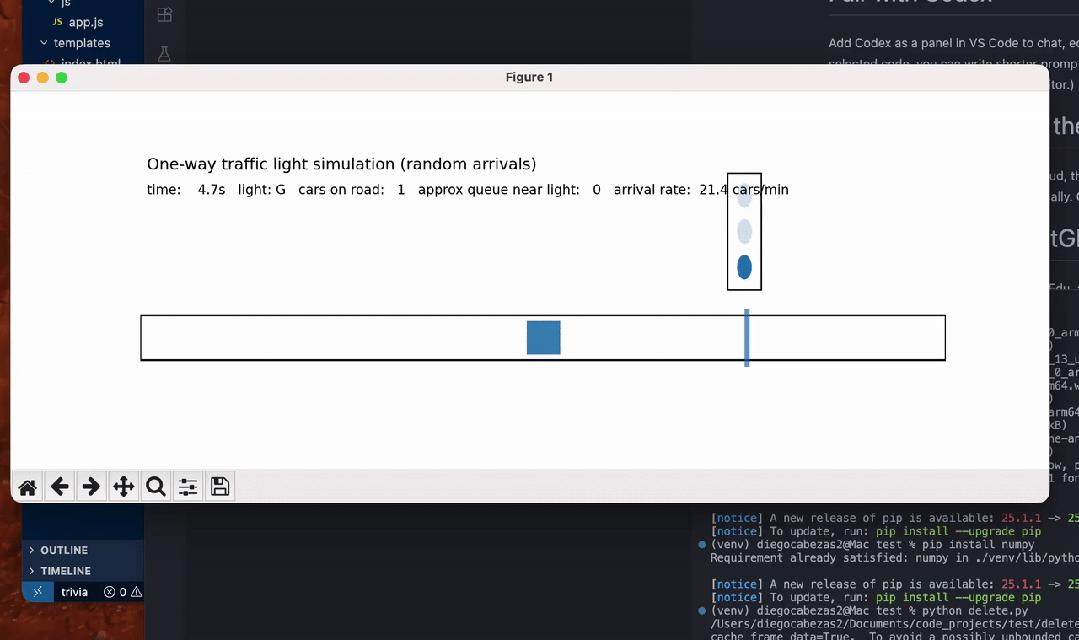 Another netizen compared their programming skills. They entered the same prompt: "Write a Python code that visualizes how a traffic light works in a one-way street with cars entering at random rates."