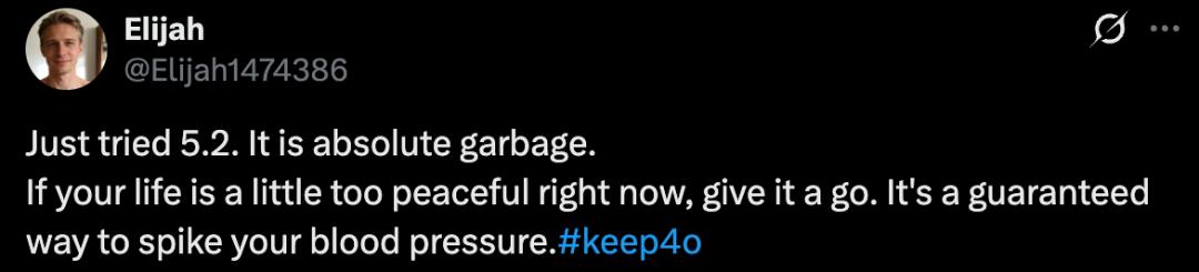 "If your life is too peaceful right now, you might want to try GPT-5.2; it will definitely make your blood pressure spike."