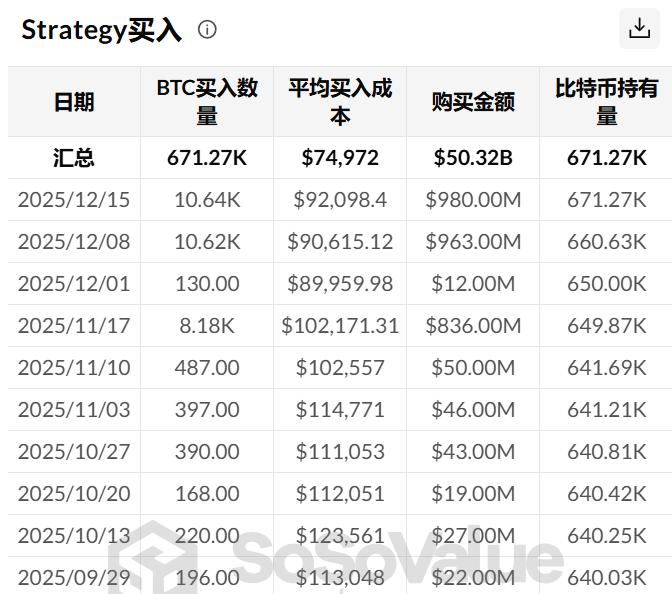 As a well-known long-term holder in the market, despite the continuous decline in Bitcoin prices and its own mNAV falling below 1, Strategy has not sold off as the market feared; instead, it has taken the opposite approach—firmly buying. To date, Strategy holds approximately 671,000 Bitcoins, with a total value exceeding $50 billion, further solidifying its position as one of the world's largest Bitcoin holders.