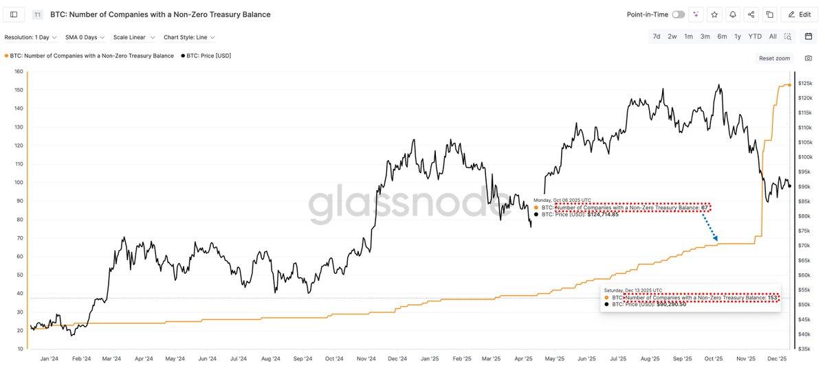It's worth noting that on October 6th, only 67 companies held "non-zero BTC balances," but with the significant correction in BTC's price, this number surged to 153. Does this mean that new corporate players are quietly entering the market during the price decline?