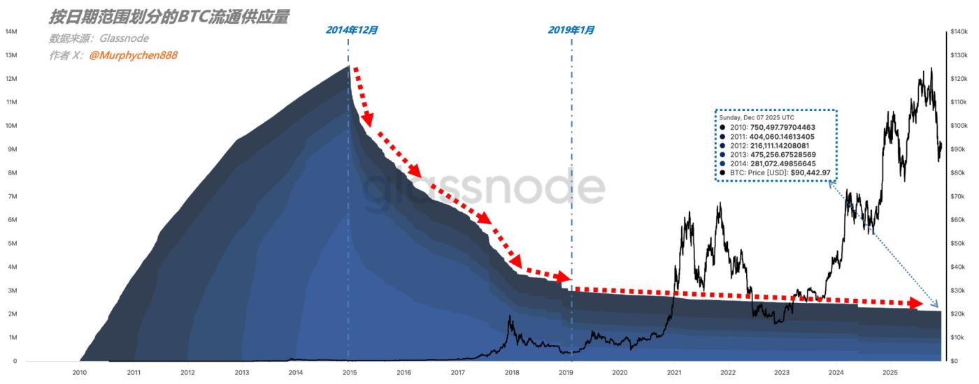 Murphy subsequently provided a more detailed analysis of this data. Because Bitcoin doesn't have a "forgot your password" feature like traditional bank accounts, it relies entirely on private keys to prove ownership. Once a private key is lost or inaccessible, the corresponding Bitcoins are permanently unmovable and cannot be spent. Although they are still recorded on the blockchain, economically speaking, they are equivalent to being permanently destroyed.