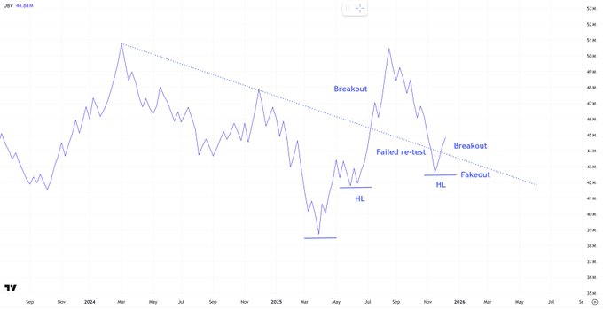 $ETH - Weekly OBV matches sentiment about the confusing year it's been. Making a bullish higher low with a nice breakout but then absolutely no re-test, but then still pulls out a bullish HL, fakeout trap, then instant breakout. Somehow, after everything, still bullish though.