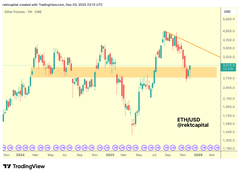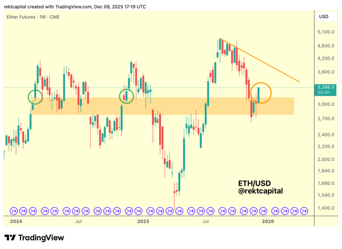 $ETH Ethereum has been able to find decent support at its historical Weekly CME Gap (orange) #ETH #Crypto #Ethereum twitter.com/rektcapital/status...