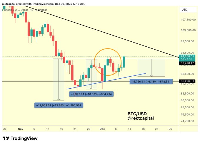 #BTC Bitcoin is now enjoying a rally after a shallow retrace If Bitcoin is able to Daily Close above the Range High resistance of $93500 and turn it into support... Bitcoin will break out from the Range History suggests that the Range breakout is a matter of time because the 12-Month Close is poised to occur above $93500 $BTC #Crypto #Bitcoin twitter.com/rektcapital/status...