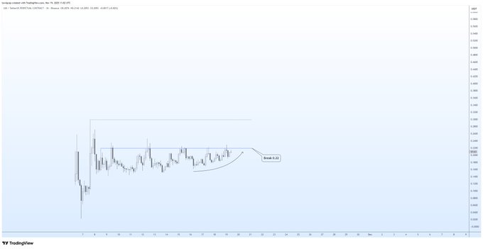 Opened a small long on $UAI - another BSC cabal AI Agent coin Reminds me of $AIA, $COAI and the other recent culprits so let's see if we can pull another banger with this one Price is ramping up into the heavy resistance at $0.22, I hope for strong momentum once we break it