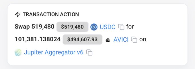 Someone dumped $500K USDC into $AVICI in a single clip lmao That's what happens when you don't give the VCs any allocation and they are forced to FOMO twitter.com/Livercoin/status/1...