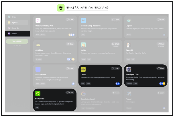Missed your @wardenprotocol mindshare on Kaito, then this is your final chance to access $WARD. $900k in WARD is up for grabs from Nov 3 till the TGE (probably mid-Dec). What have you missed since then? + brand new agents on Warden: @levva_fi - port manager, intelligent DCA agent and @coingecko agent for token sniping + bet page with BetFlix - the Tinder of trading offering an easy trading experience at your fingertips + $1m in agent developers program ngl, the whole Warden community is raging on. twitter.com/0xAndrewMoh/status...