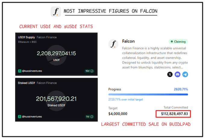 Amazing stats for @FalconStable in October: + Successful $FF tge (marking the largest committed fund on Buidlpad at $112.8m). Current fdv: $1.26b. + USDf surpassed $2b in circulation, gaining 9.2% MoM + Falcon Miles Season 2 continues with the introduction of 3k5 Perryverse twitter.com/0xAndrewMoh/status...