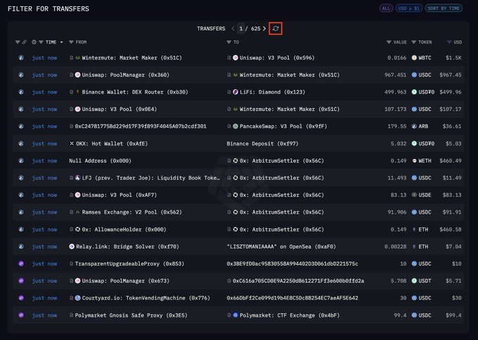 RECEIVE ENTITY TRANSACTIONS IN REAL-TIME We’ve just added the update button to our transaction logs. If you’re waiting for a specific transaction, you can now refresh an entity’s entire transaction history without reloading the page or needing to re-add your filters. Try it out on Arkham today: